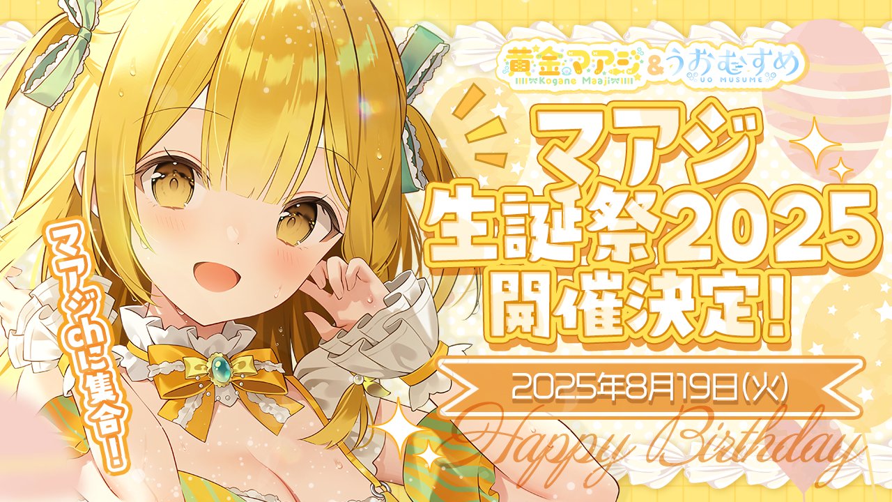 来たる2025年8月19日(火)20時より、1期生・黄金マアジの誕生日を祝う「マアジ生誕祭2025」をYouTubeライブにて開催します 。
