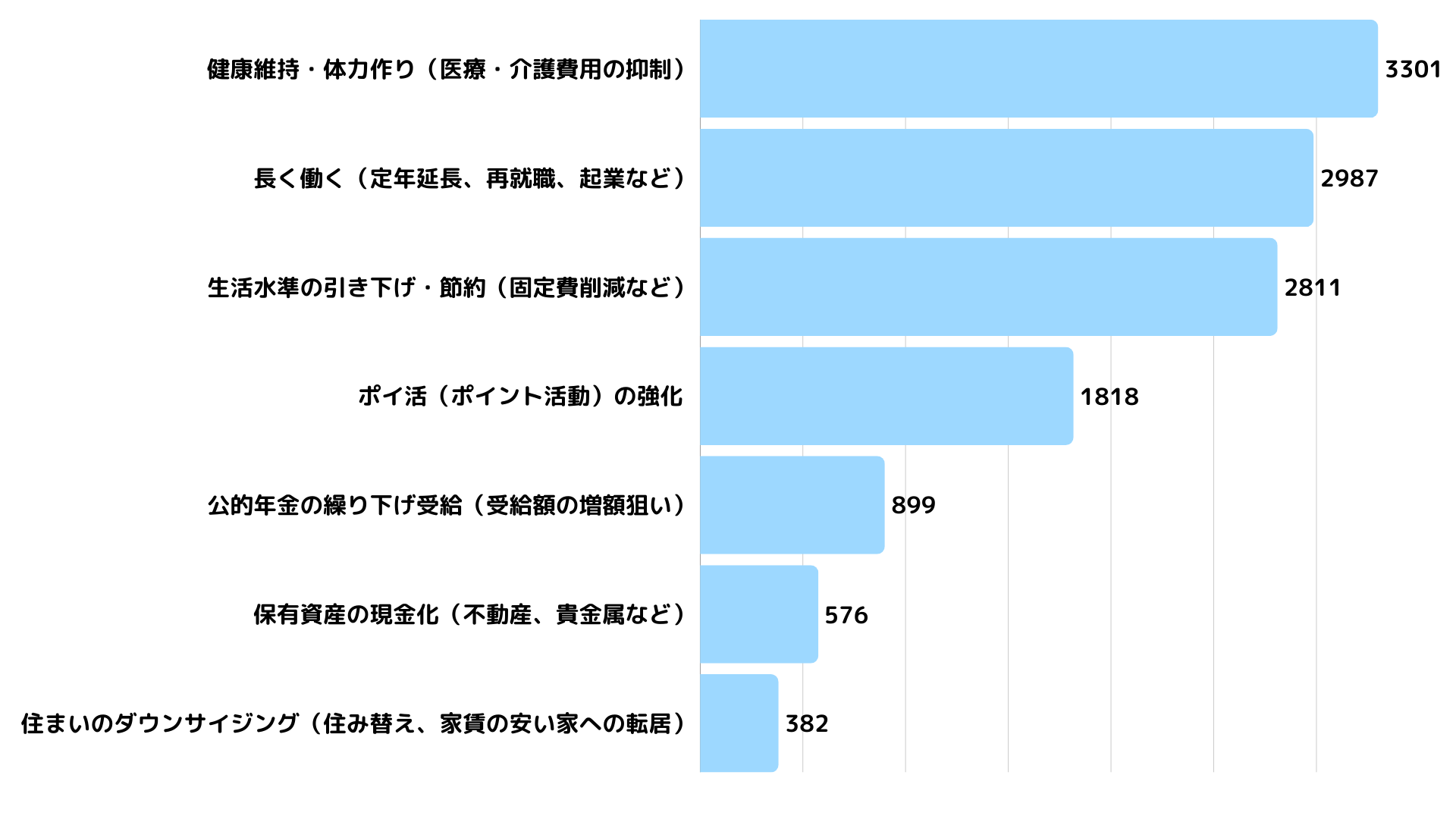 資産運用(投資)以外での取り組みを聞いたところ、トップは「健康維持・体力作り(3,301件)」でした。これは医療費という将来のコスト(負債)を減らし、長く働くための資本を作る「自己投資」といえます。